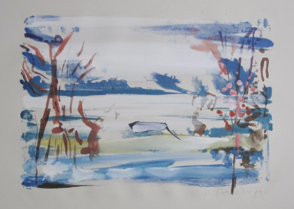 Technik: Grafisches Set mit 3 aquarellierten Original-Lithografien in einer Mappe aus handgeschöpftem Bütten
