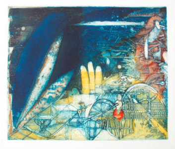 Barbara Beisinghoff, aus der Edition “Die Gläserne Libelle”, Farbradierung